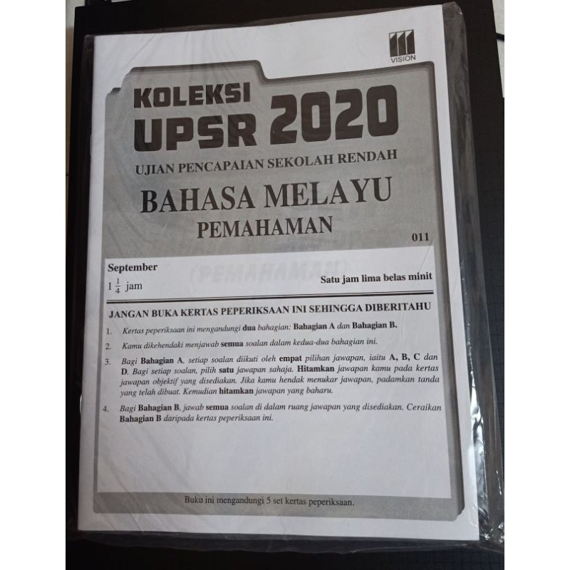 Bl Kertas Soalan Peperiksaan Sebenar Upsr Bahasa Melayu Shopee Malaysia